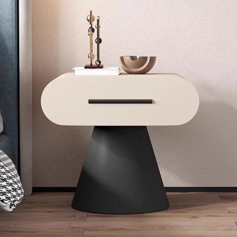 This side table features a beige tabletop paired with a black conical base, creating a striking color contrast. The oval - shaped tabletop combined with the simple drawer design is both practical and aesthetically modern. Exquisite ornaments can be placed on the tabletop, adding a touch of elegance and warmth to the space.